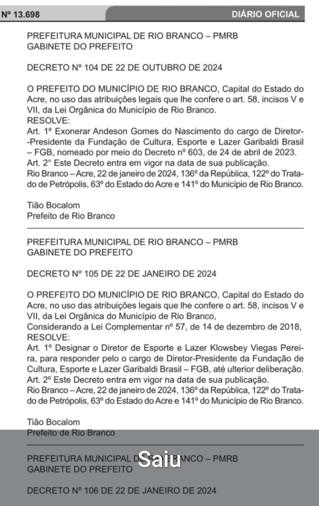 FOI NOMEADO PRESIDENTE DA FUNDAÇÃO GARIBALDI BRASIL.