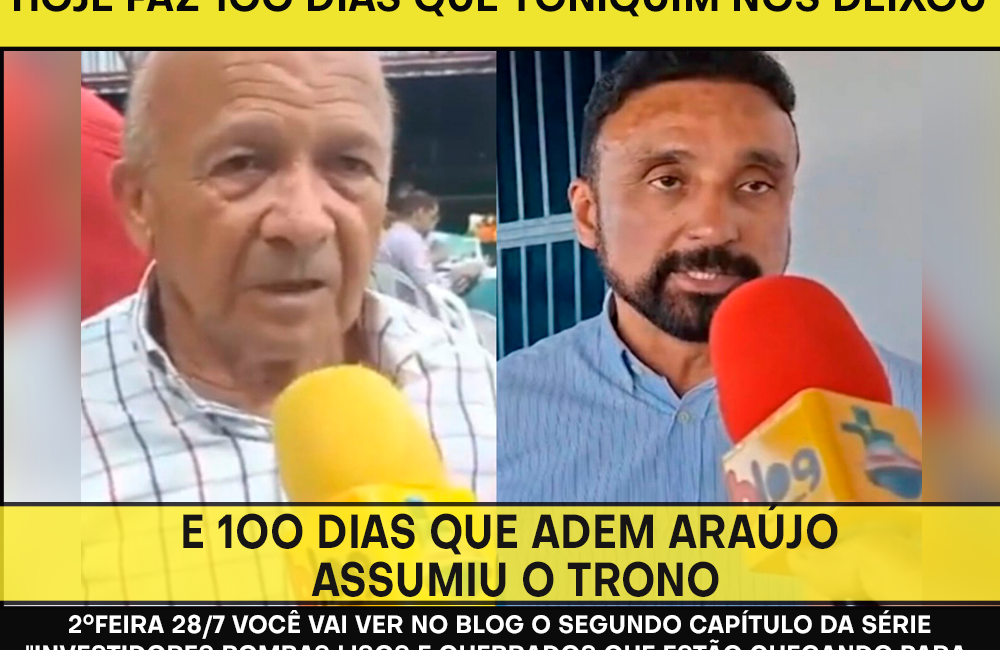 HOJE FAZ 1OO DIAS QUE TONIQUIM NOS DEIXOU E 1OO DIAS QUE ADEM ARAÚJO ASSUMIU O TRONO
