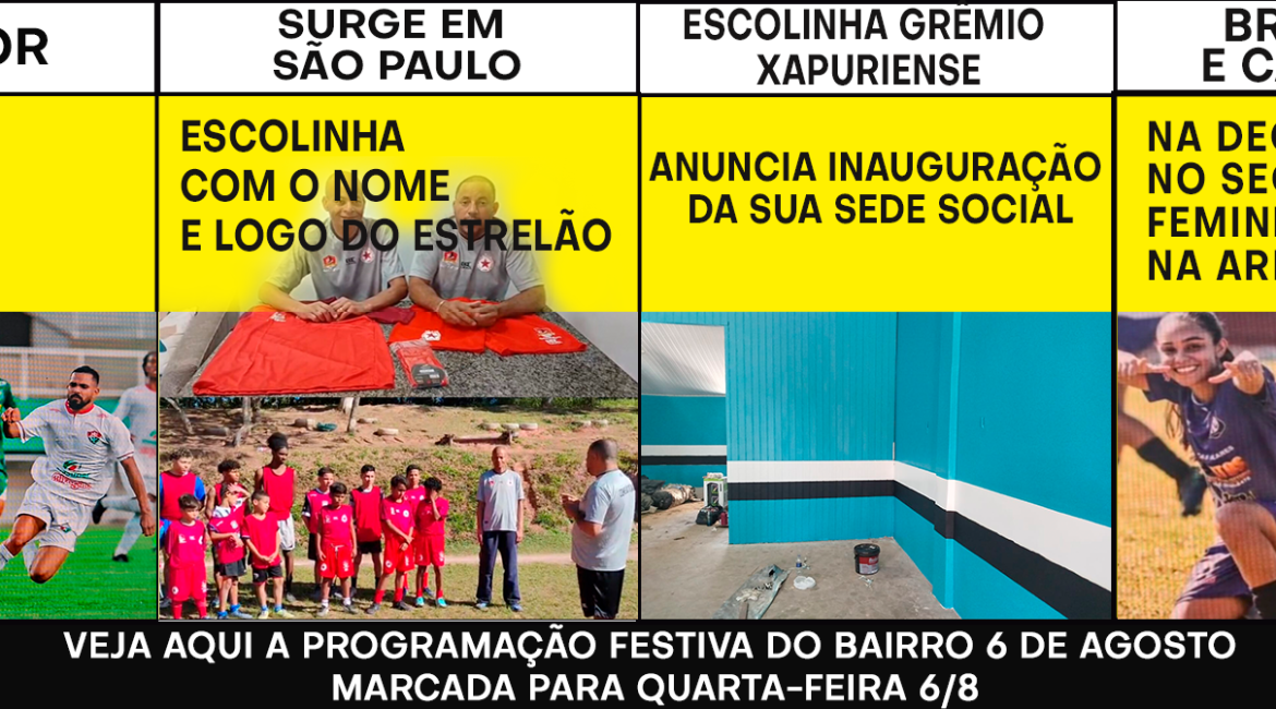 TRICOLOR FOI GOLEADO EM CASA 5X1 AGORA FICOU COMPLICADO SURGE EM SÃO PAULO ANUNCIA INAUGURAÇÃO DA SUA SEDE SOCIAL ESCOLINHA GRÊMIO XAPURIENSE ANUNCIA INAUGURAÇÃO DA SUA SEDE SOCIAL BRUNINHA E CAMILINHA NA DECISÃO NO SEGUNDO TURNO FEMININO AMANHÃ NA ARENA