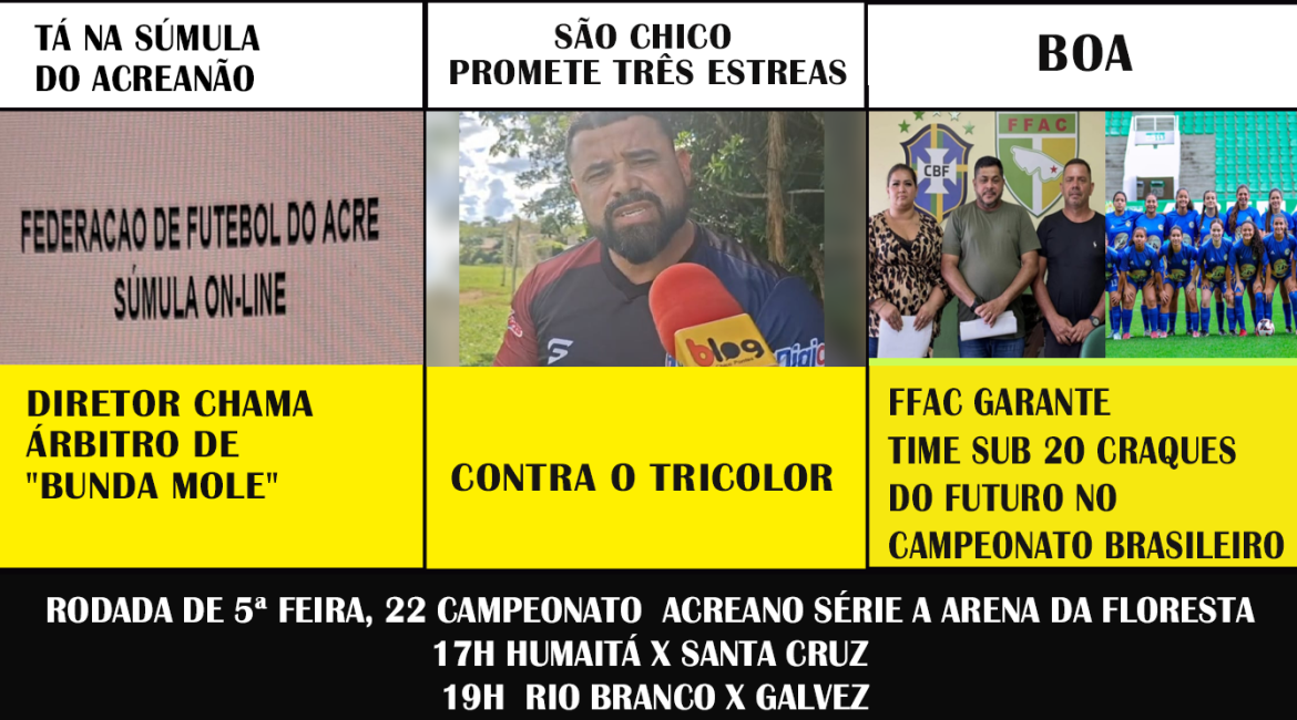TÁ NA SÚMULA DO ACREANÃO… DIRETOR CHAMA ÁRBITRO DE “BUNDA MOLE” SÃO CHICO PROMETE TRÊS ESTREAS CONTRA O TRICOLOR BOA! FFAC GARANTE TIME SUB 2O CRAQUES DO FUTURO NO CAMPEONATO BRASILEIRO