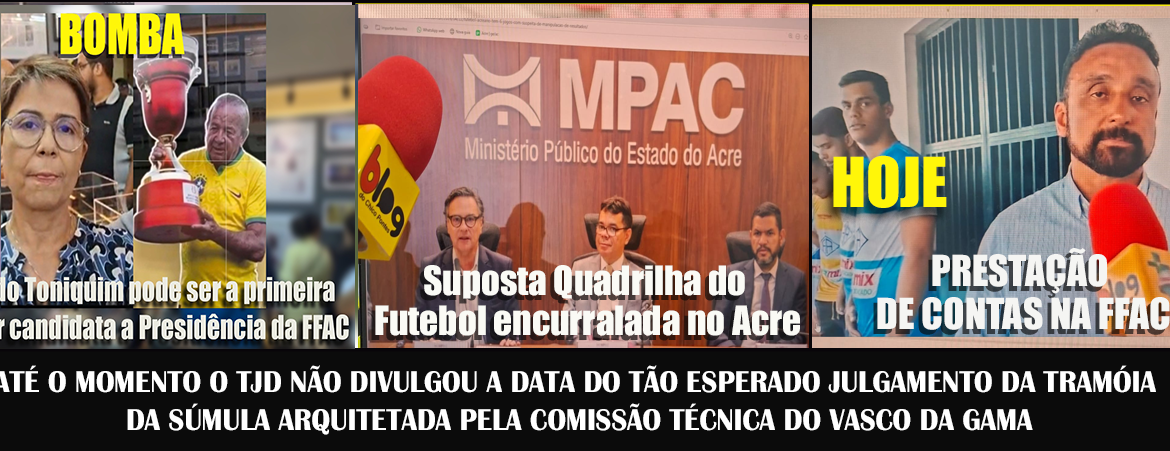 BOMBA | Filha do Toniquim pode ser a primeira mulher candidata a Presidência da FFAC Suposta Quadrilha do Futebol encurralada no Acre HOJE, PRESTAÇÃO DE CONTAS NA FFAC