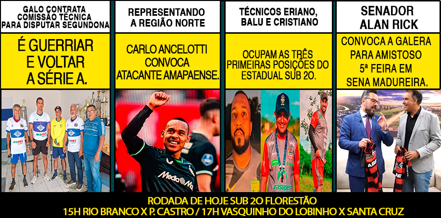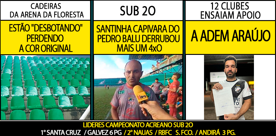 FUTEBOL ACREANO VIROU FREGUÊS DO PARÁ E DO AMAZONAS. ACREANAS DERROTA AS MATOGROSSENSES MAS NÃO AVANÇA NO BRASILEIRO SÉRIE A3. COMUNIDADE DO BELA VISTA HOMENAGEOU O SAUDOSO MÉDICO MÁRCIO BESTENE. TONIQUIM SEMPRE LUTOU PARA QUE OS ESTADUAIS TIVESSEM NO MÁXIMO 11 DATAS.