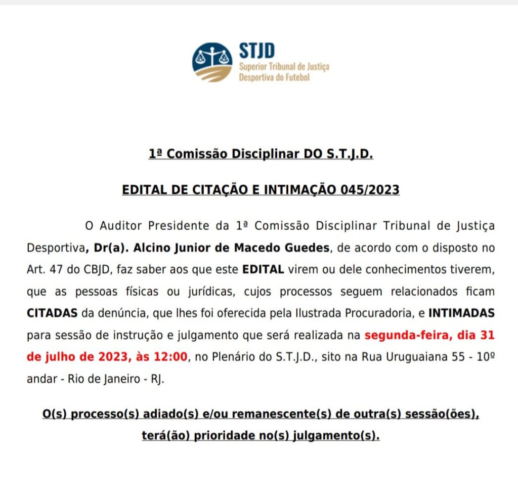 Dia 13 de maio/23 o Sport Clube Humaitá foi multado em 700 reais porque não apresentou defesa no processo n. 0212/2023 em Julgamento do STJD.