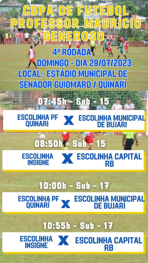 Neste domingo 3O/7 a 4°Rodada vai ser realizada no Estádio Naborzão no Quinari. Acompanhe o convite de Klosbey Pereira: