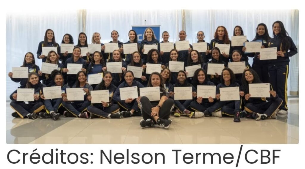 Verônica Severino e as demais concursadas, tiveram aulas técnicas com a instrutora FIFA Sabrina Lois e na parte física por instrutoras CBF.