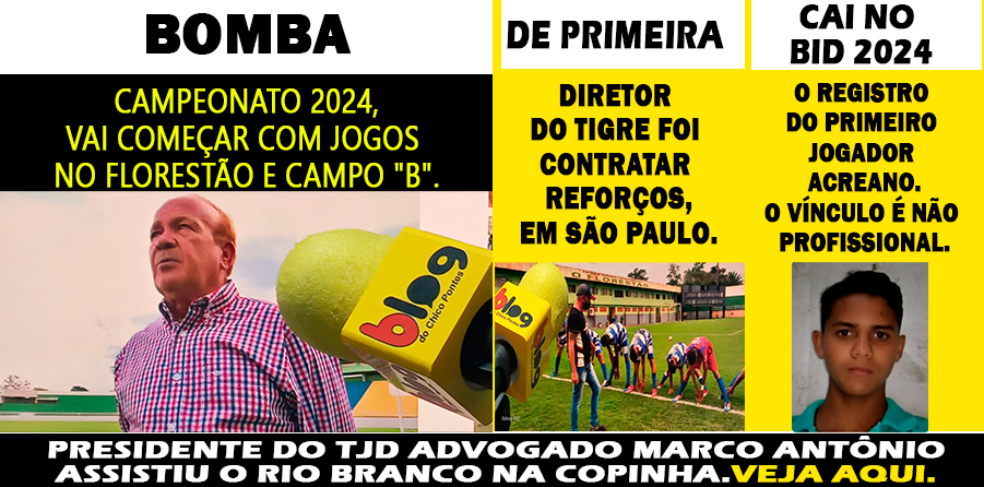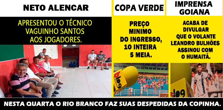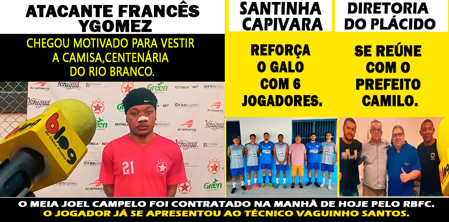 DE PRIMEIRA NETO ALENCAR RECEBE CONVITE PARA O RIO BRANCO FAZER AMISTOSO FORA DO ACRE. DECISÃO TOMADA PLÁCIDO CONFIRMA TIME 100% CASEIRO NA TEMPORADA. SÃO FRANCISCO INICIA A PRÉ TEMPORADA EM RIO VERDE.