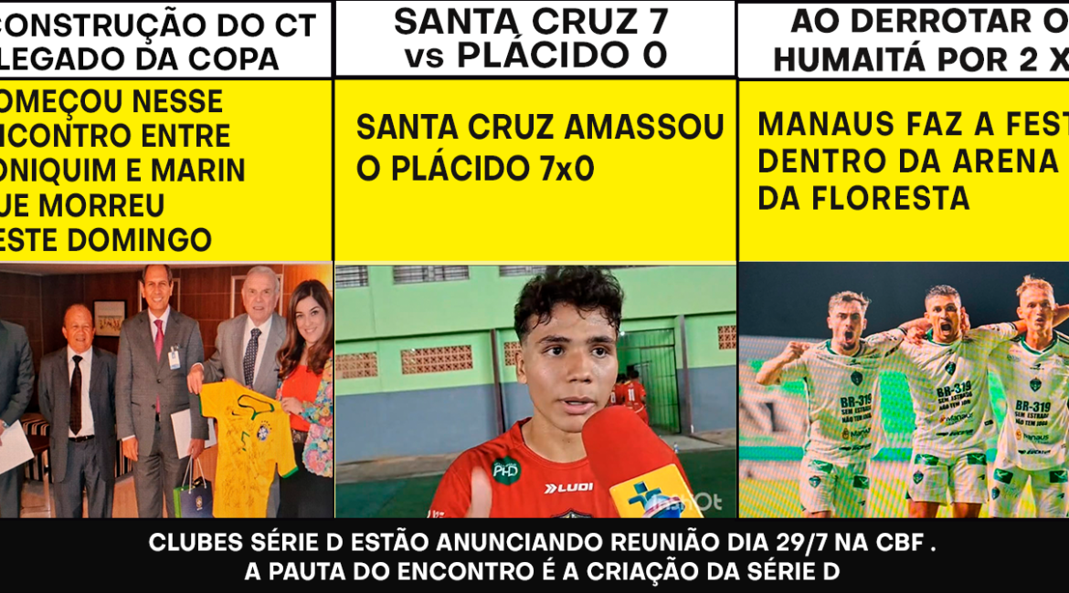 A CONSTRUÇÃO DO CT LEGADO DA COPA COMEÇOU NESSE ENCONTRO ENTRE TONIQUIM E MARIN QUE MORREU NESTE DOMINGO SANTA CRUZ 7 vs 0 PLÁCIDO: SANTA CRUZ AMASSOU O PLÁCIDO 7×0 AO DERROTAR O HUMAITÁ POR 2 X 1, MANAUS FAZ A FESTA DENTRO DA ARENA DA FLORESTA