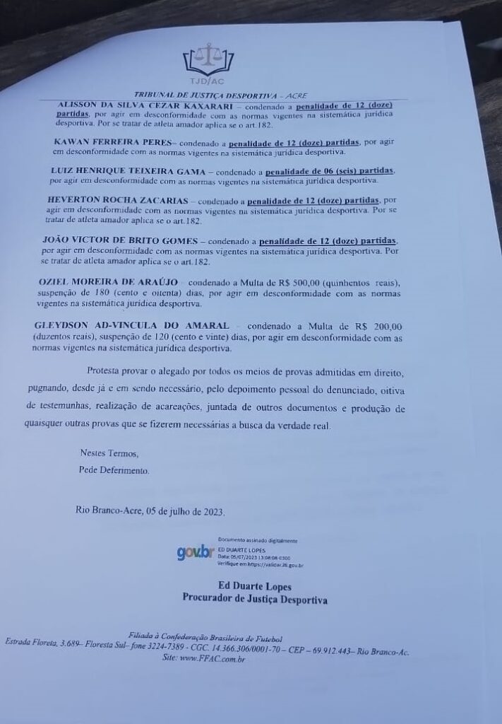 Esse julgamento da Comissão Disciplinar foi realizado 6ª Feira 4/8. O Blogdochicopontes acompanhou o julgamento. Como advogado Eder Barros da Comissão técnica do Imperador Galvez, foi quem defendeu o Técnico Oziel Moreira. Veja a Reportagem: