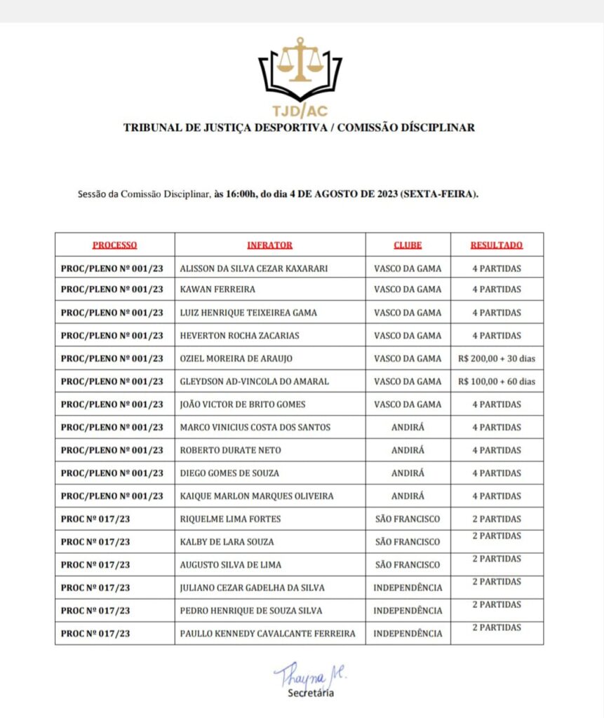 Denunciados pelo Procurador Ed Duarte Lopes, os 7 infratores da batalha campal de 30 de junho, entre Vasco 2 X Andirá Santa Cruz 2 pelo Estadual Sub 20 sofreram penas pesadas.