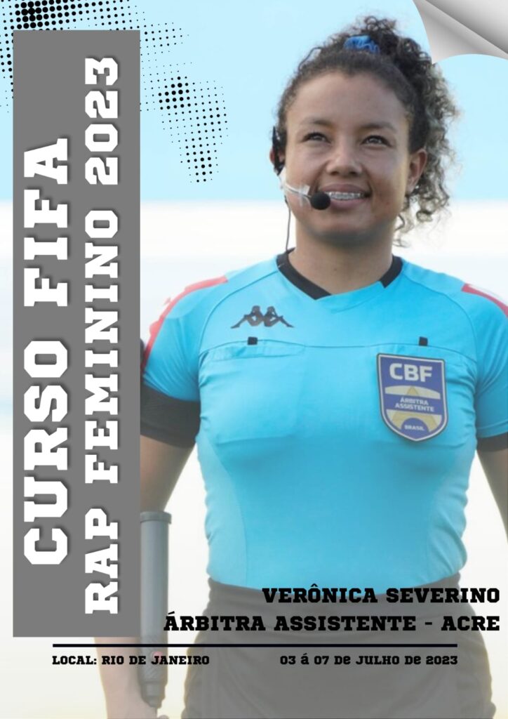 Verônica Severino vai participar da primeira turma do curso, que começa dia 3/7/2.ª Feira e termina 4ª Feira 12/7. Esse é um curso de excelência onde os participantes vão ganhar conhecimento internacional como árbitro assistente.