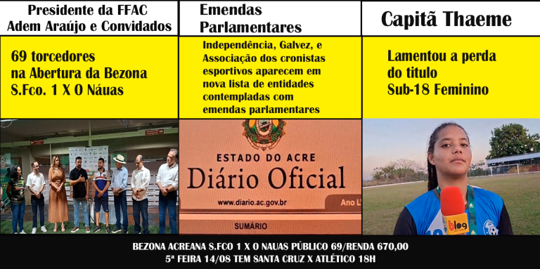 Campeonato Sub-20 COM VITÓRIA DE 3X1 DIANTE DO TIGRÃO MORCEGÃO ESTREIA NA BEZONA ACREANA COM VITÓRIA DE 3X1 DIANTE DO TIGRÃO Confira 18 de agosto de 2025