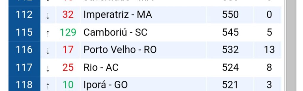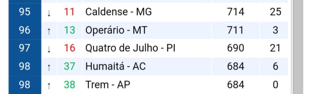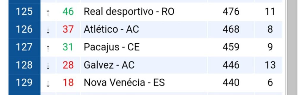 Confira as posições dos Clubes acreanos. Fonte de informações Ranking CBF:
