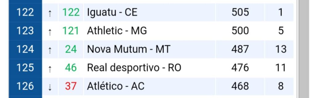 N°124 Atlético Acreano 468 pontos.