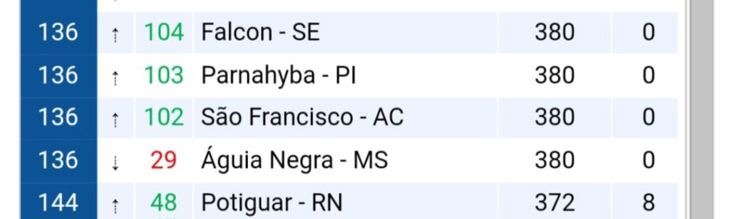 N.136 São Francisco 380 pontos.