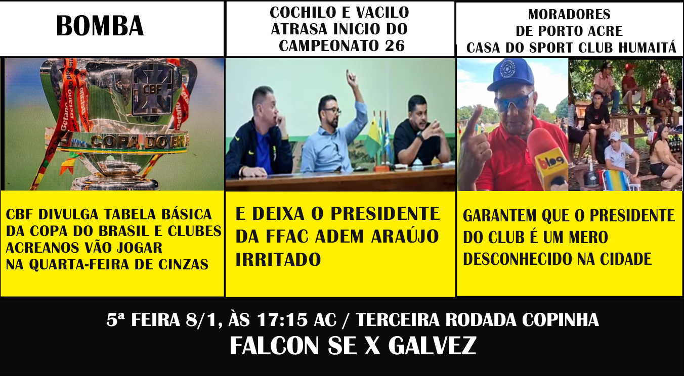 BOMBA! CBF DIVULGA TABELA BÁSICA DA COPA DO BRASIL E CLUBES ACREANOS VÃO JOGAR NA QUARTA-FEIRA DE CINZAS