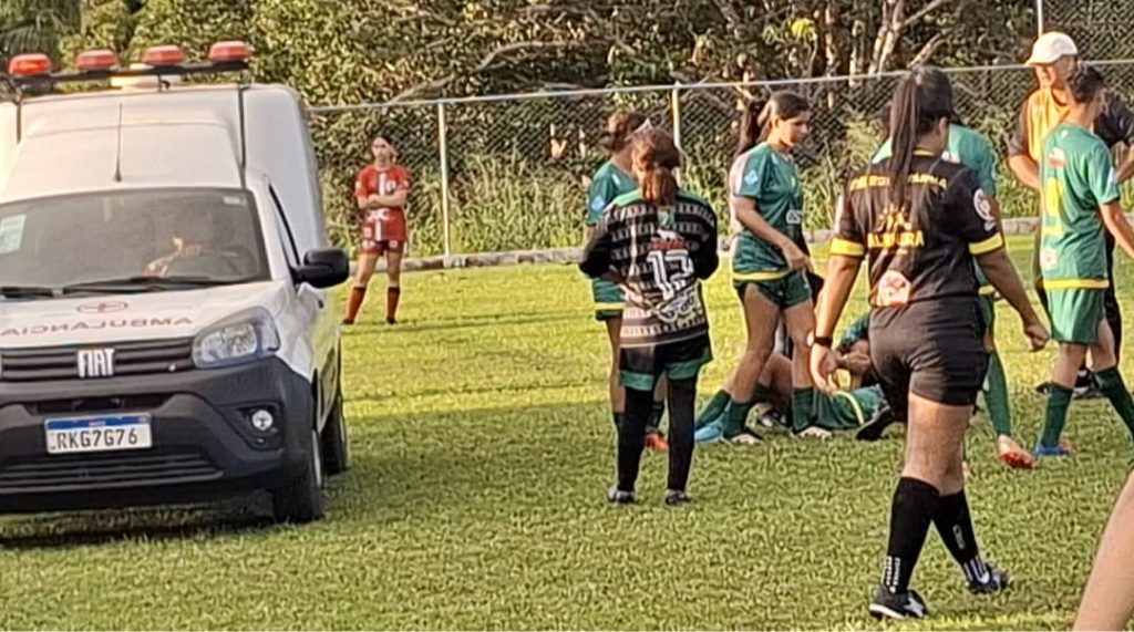 ASSERMURB GOLEIA 7 X O E JOGADORA DO GALVEZ DEIXA O CAMPO DE AMBULÂNCIA