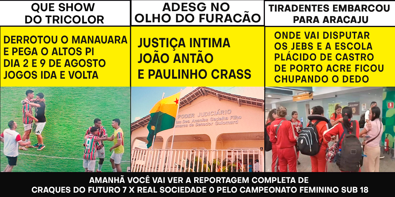 TIRADENTES EMBARCOU PARA ARACAJU ONDE VAI DISPUTAR OS JEBS E A ESCOLA PLÁCIDO DE CASTRO DE PORTO ACRE FICOU CHUPANDO O DEDO