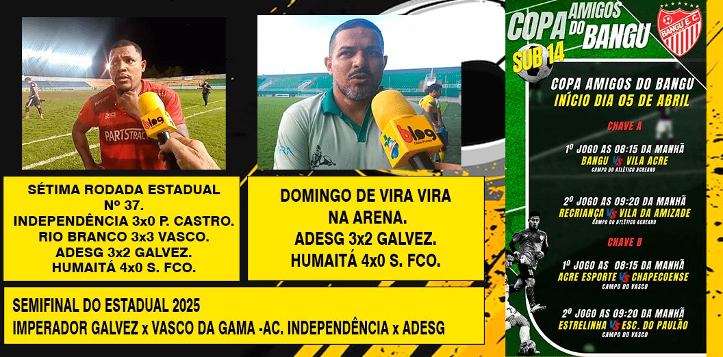 INDEPENDÊNCIA 3×0 P. CASTRO. RIO BRANCO 3×3 VASCO. ADESG 3×2 GALVEZ. HUMAITÁ 4×0 S. FCO.